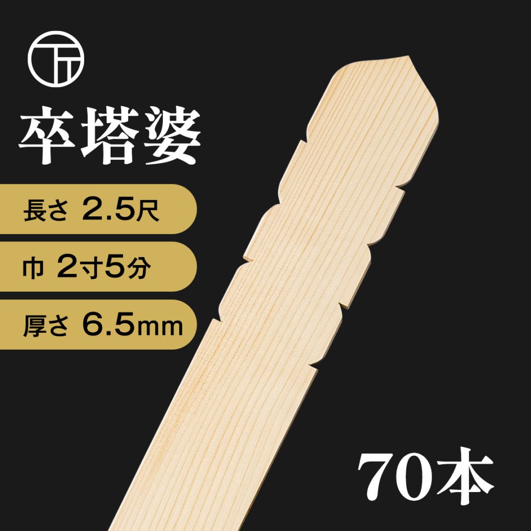 2.5尺卒塔婆(巾2寸5分 厚さ6.5mm)70本入り