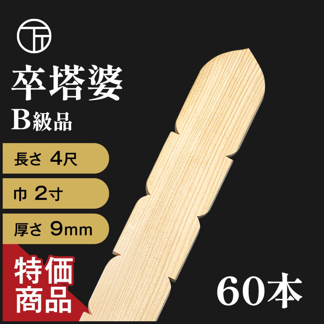 4尺卒塔婆(巾2寸) 60本入り 特価商品 B級品(単価:¥319)