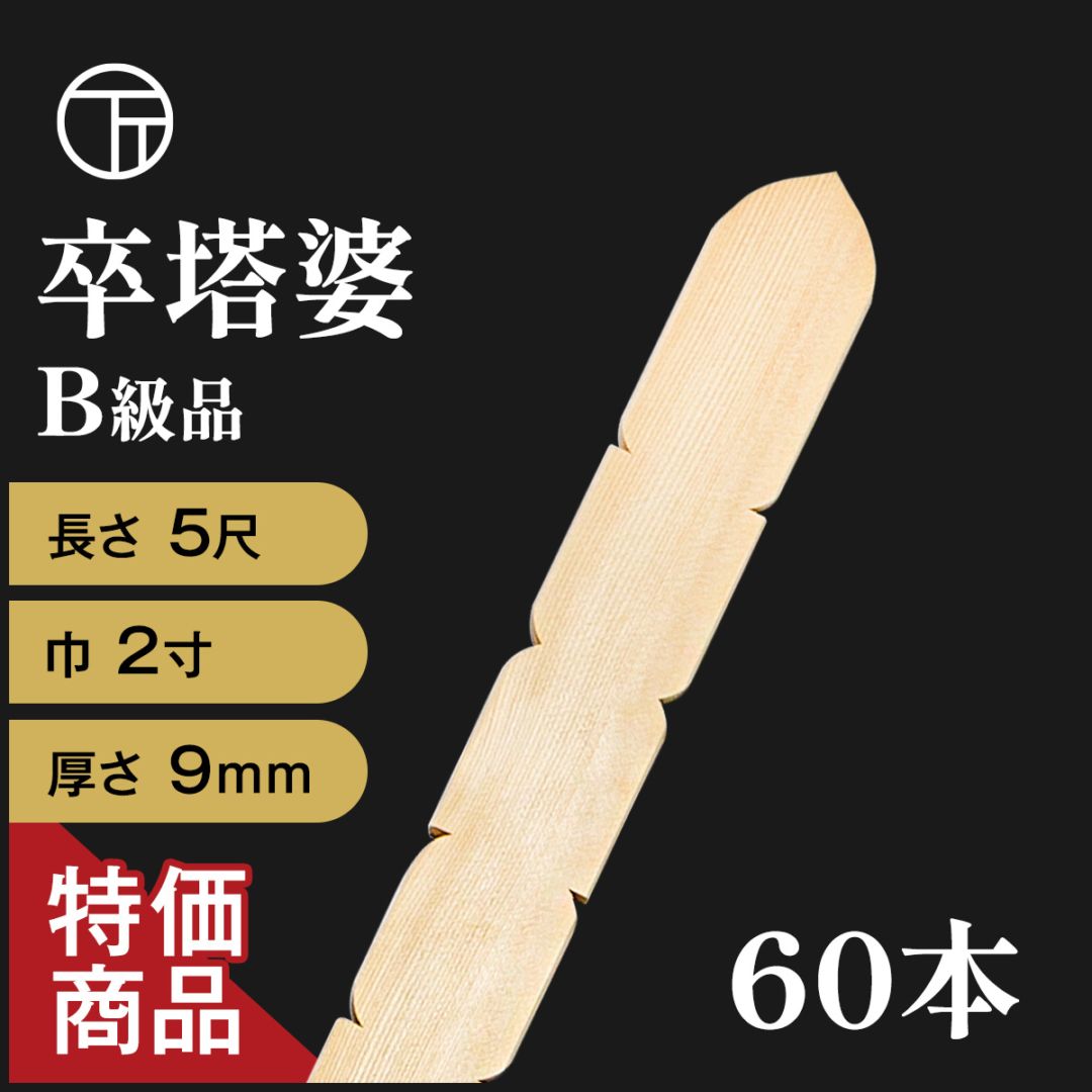 5尺卒塔婆(巾2寸) 60本入り 特価商品 B級品 (単価:¥462)