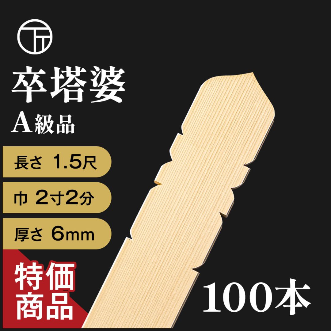 1.5尺卒塔婆(巾2寸2分 厚さ6mm)100本入り 特価商品 A級品(単価:¥165)