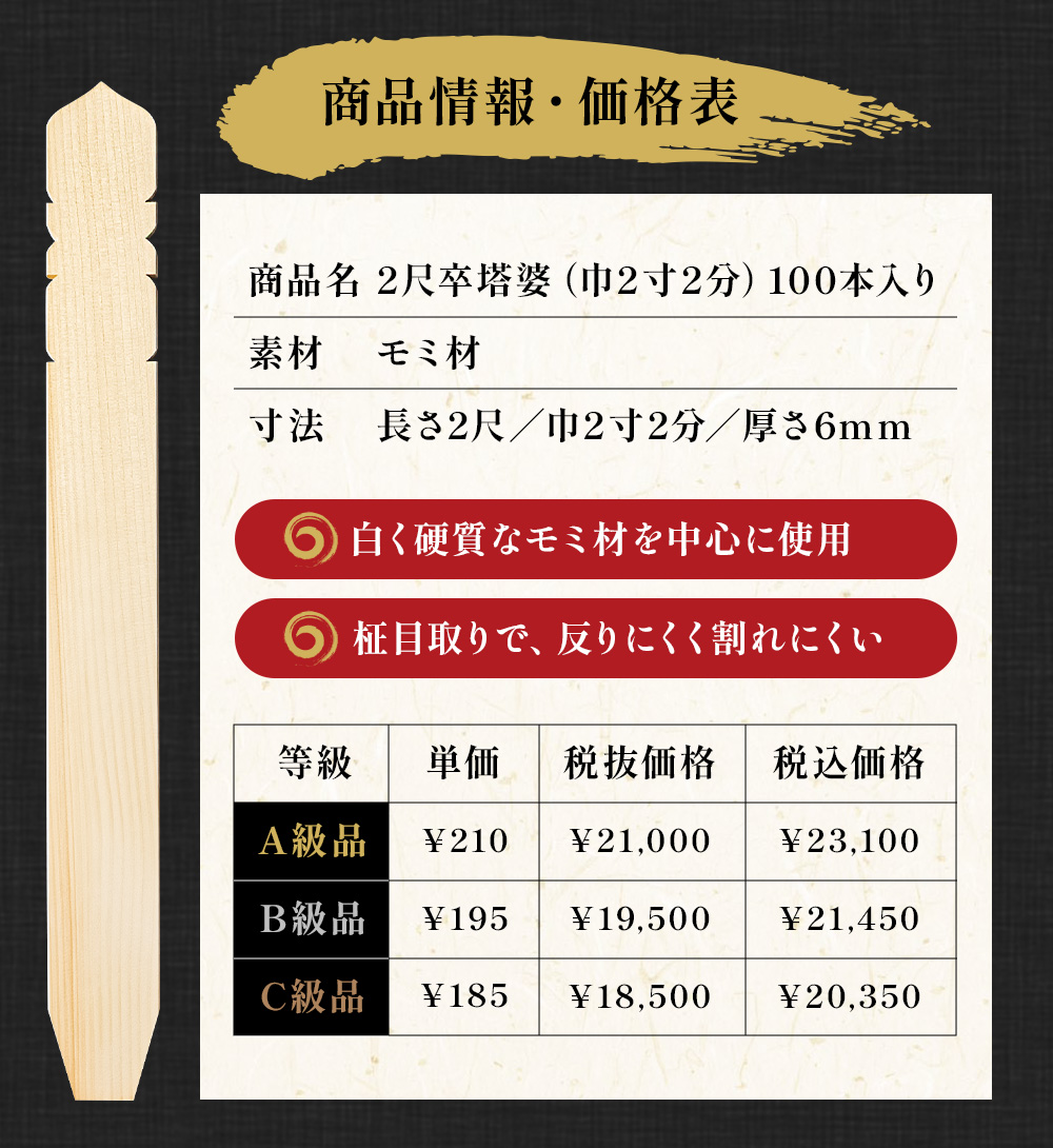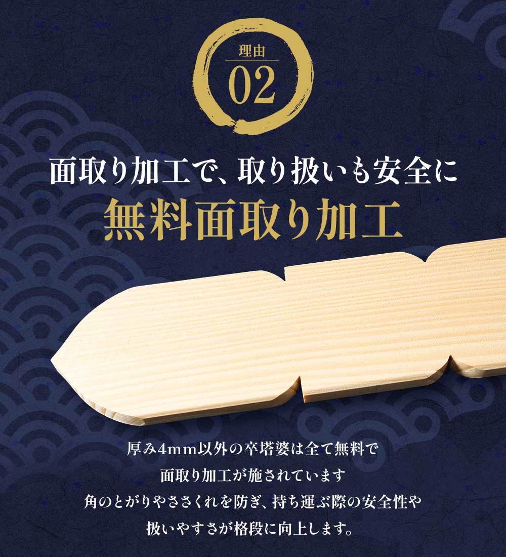 ※下平(塔婆の下部分に切り込みがないもの)を希望の方はご購入画面にて該当の項目にチェックください。