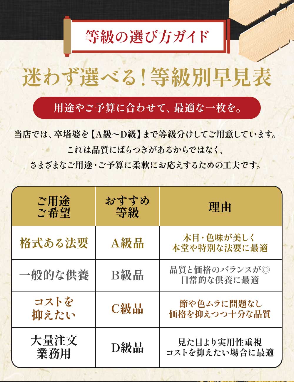 当店では、高品質な卒塔婆をご提供させていただくために必ず職人が商品の出来栄えをチェックいたします。