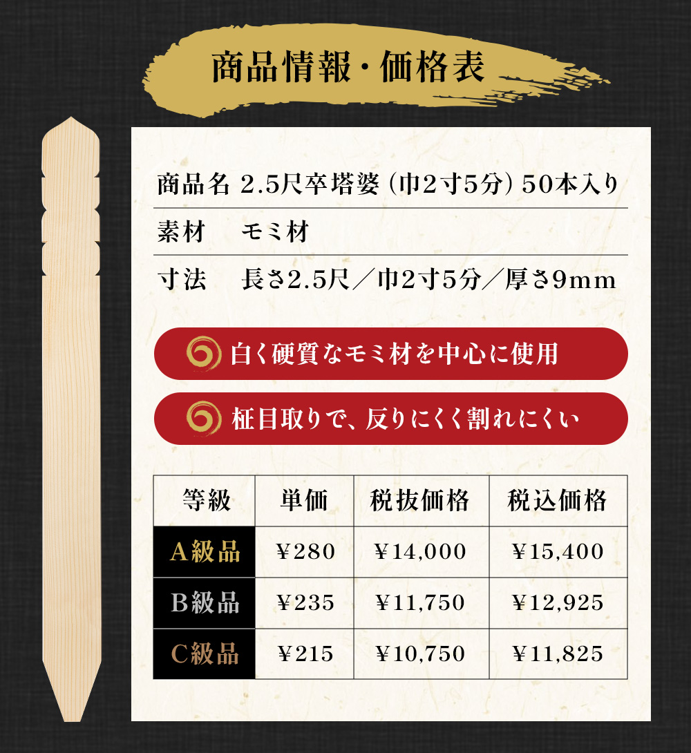 ※下平(塔婆の下部分に切り込みがないもの)を希望の方はご購入画面にて該当の項目にチェックください。