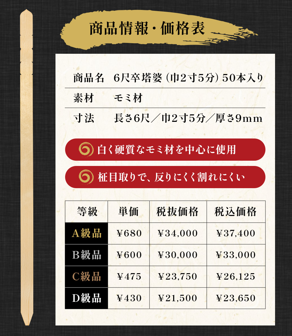 当店では、高品質な卒塔婆をご提供させていただくために必ず職人が商品の出来栄えをチェックいたします。